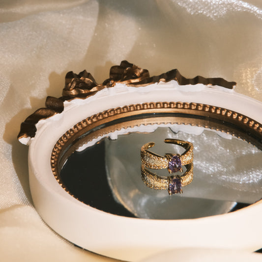Anillo brillante dorado 18K circonita púrpura “Amor de Lavanda”