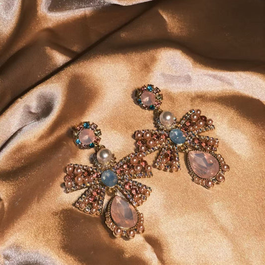 Miana Señorita Audrey pendientes largos maximalistas con cristales románticos
